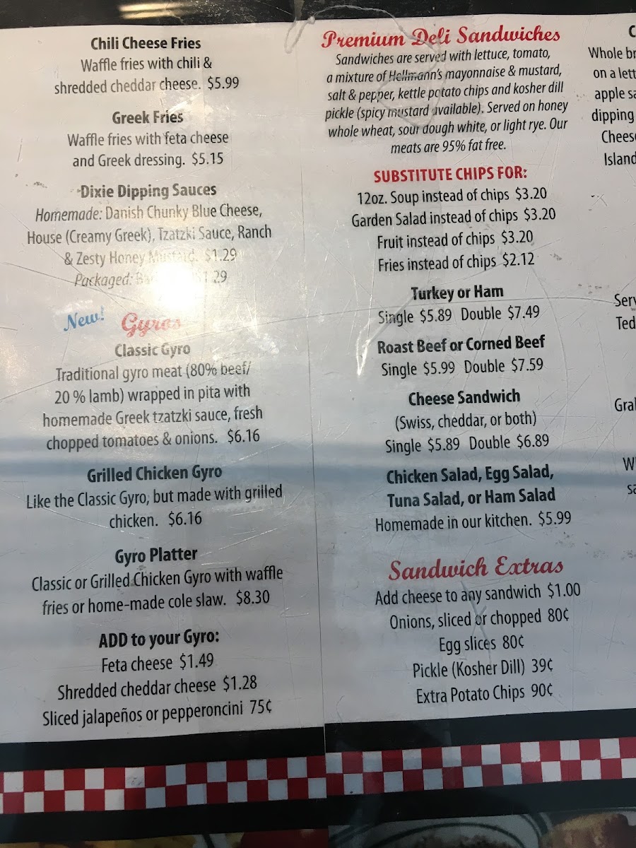 Introducing the vibrant menu of Dixie Chili & Deli, nestled at 3716 Dixie Hwy, Erlanger, KY. This spot captures the essence of classic diner fare while spotlighting their specialty: chili. The menu features indulgent Gyros, expertly prepared with tzatziki sauce, fresh tomatoes, and onions—available in classic and grilled chicken variations.